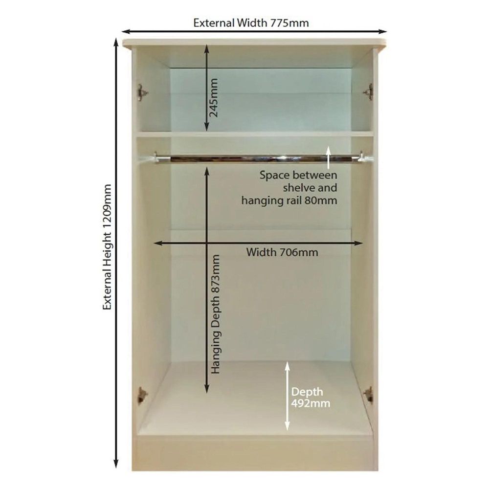 Item Code: KNI058CGLO On ready assembled wardrobes Please note in the event the wardrobe does not fit in to your property we do not accept returns please ensure you measure your propertybefore placing an order for the ready assembled wardrobes.Standard Equipment Includes : 1 Hanging Rail and 1 ShelfThis is a Made to Order itemAll Made to Order items are manufactured as per the order supplied by you.We are unable to accept cancellation or accept any extra cost that may incur due to wrong information provided by you at the time you placed the order.We will confirm all sizes/colours/finishes in written email (order confirmation) with you before going ahead with production of your order.