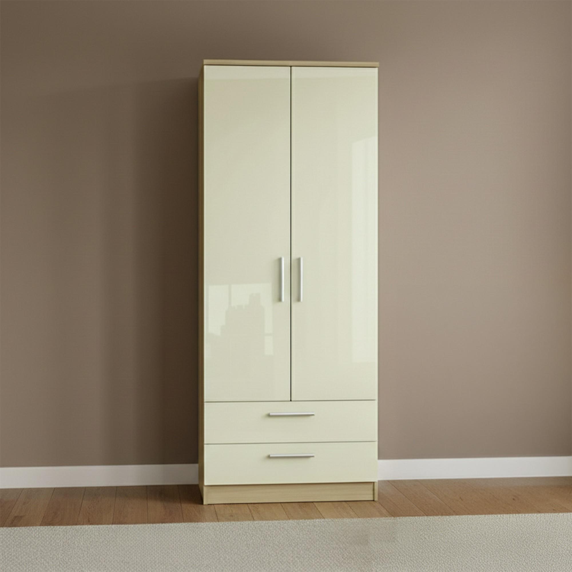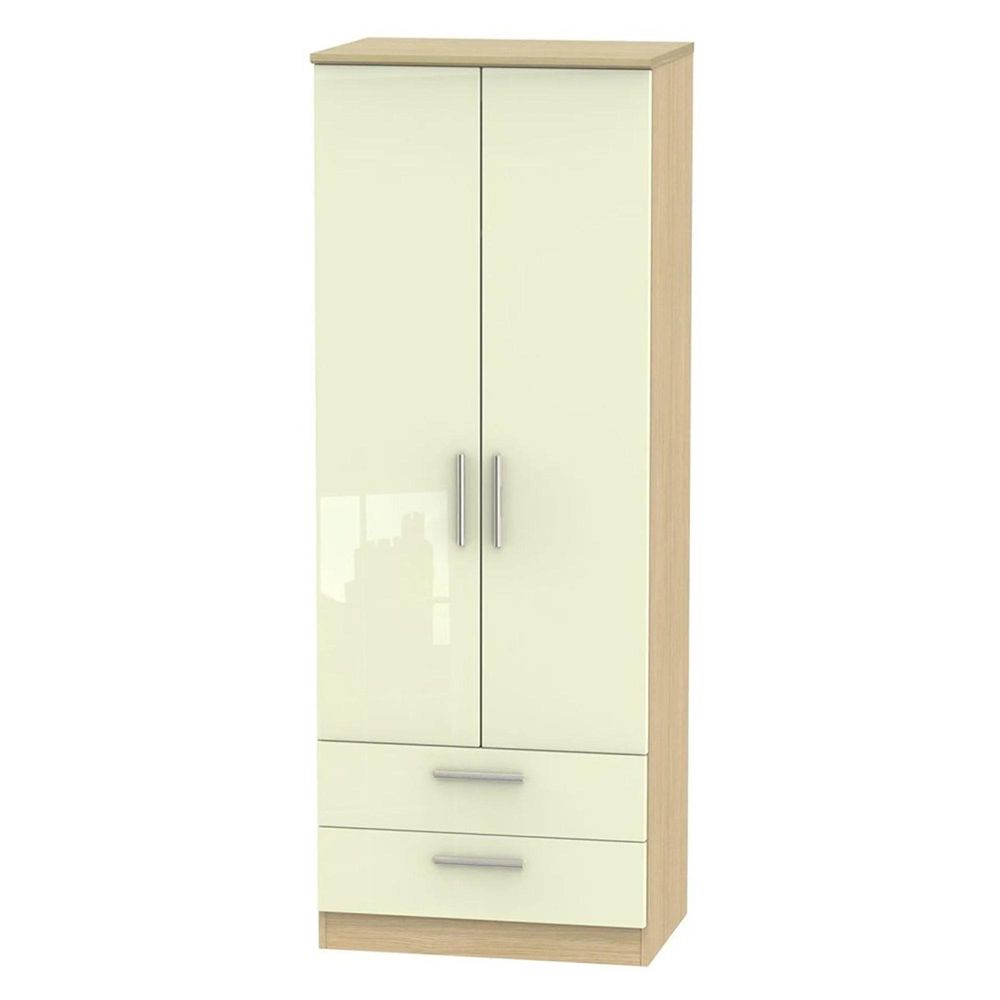 Knightsbridge Tall Wardrobe - 2 Door - 2 Drawer - Cream Gloss and Light Oak