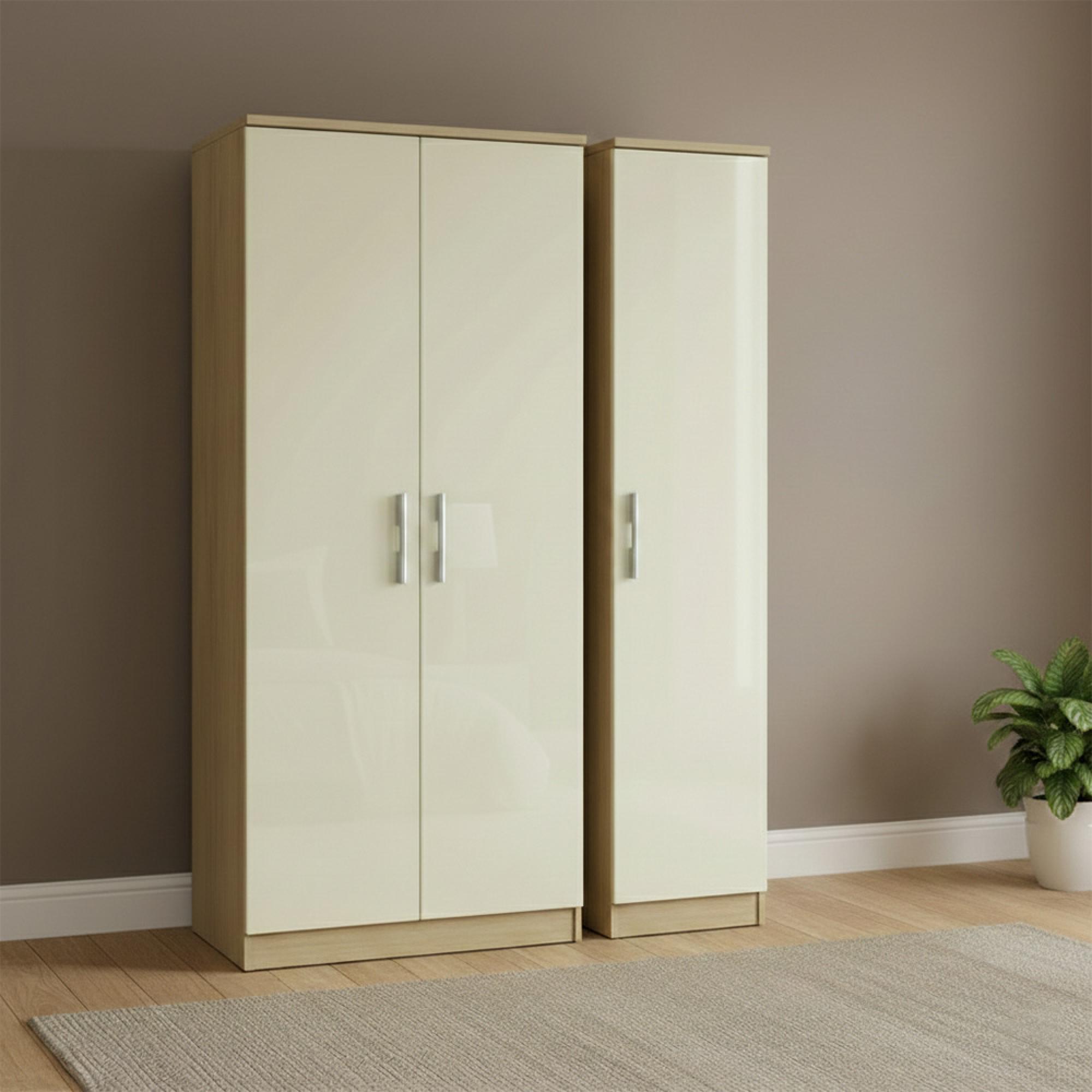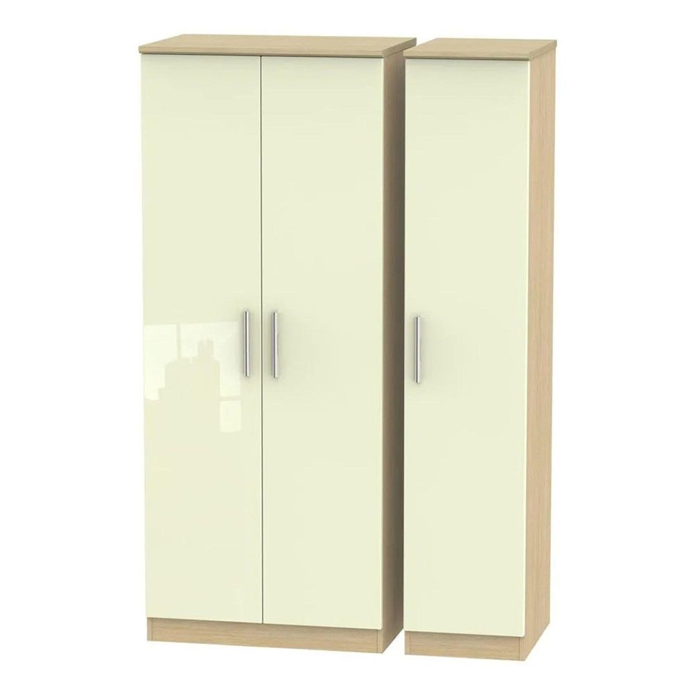 Knightsbridge Triple Wardrobe - 3 Door - Cream Gloss and Light Oak