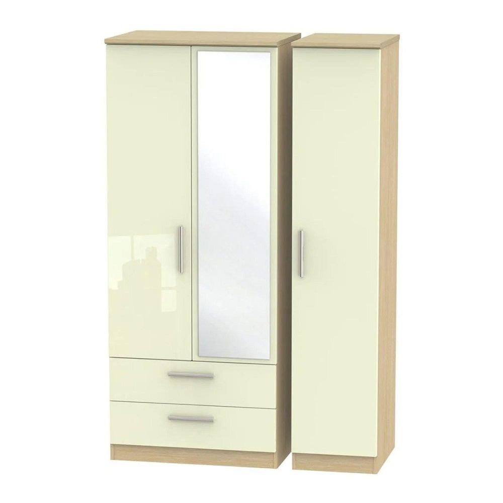 Knightsbridge Triple Wardrobe - 3 Door - LHF 2 Drawers - Combi - Cream Gloss and Light Oak