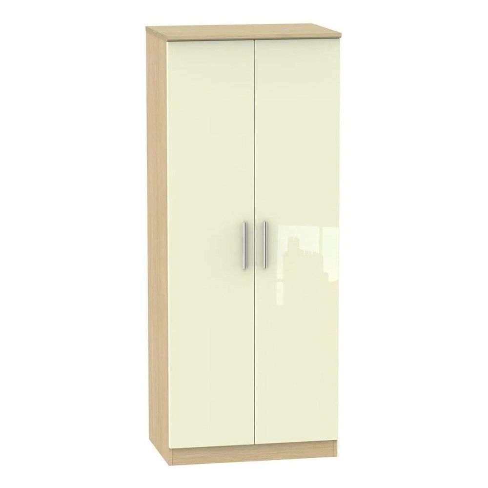 Knightsbridge Wardrobe - 2 Door - Plain - Cream Gloss and Light Oak