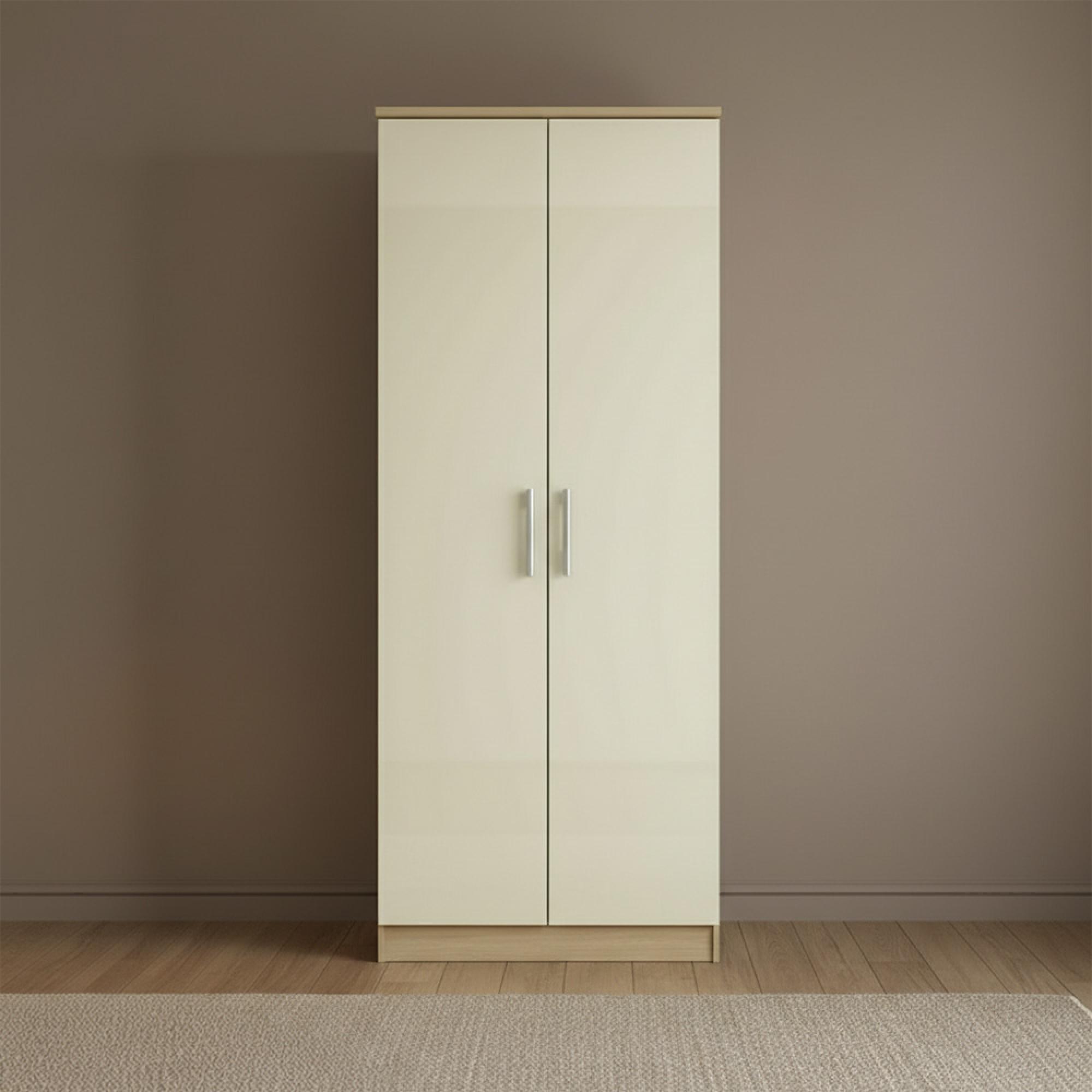 Knightsbridge Wardrobe - 2 Door - Plain Tall - Cream Gloss and Light Oak