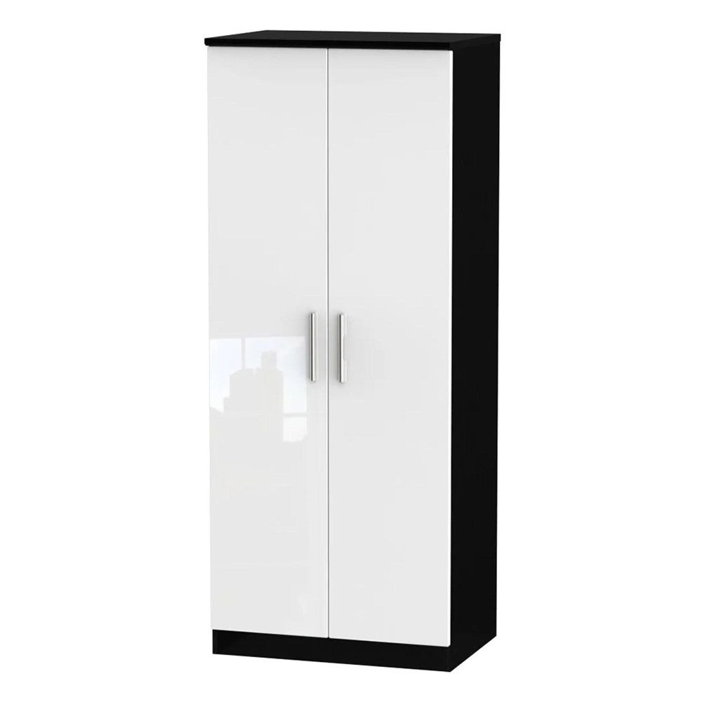 Knightsbridge Wardrobe - 2 Door - Plain - White Gloss and Black
