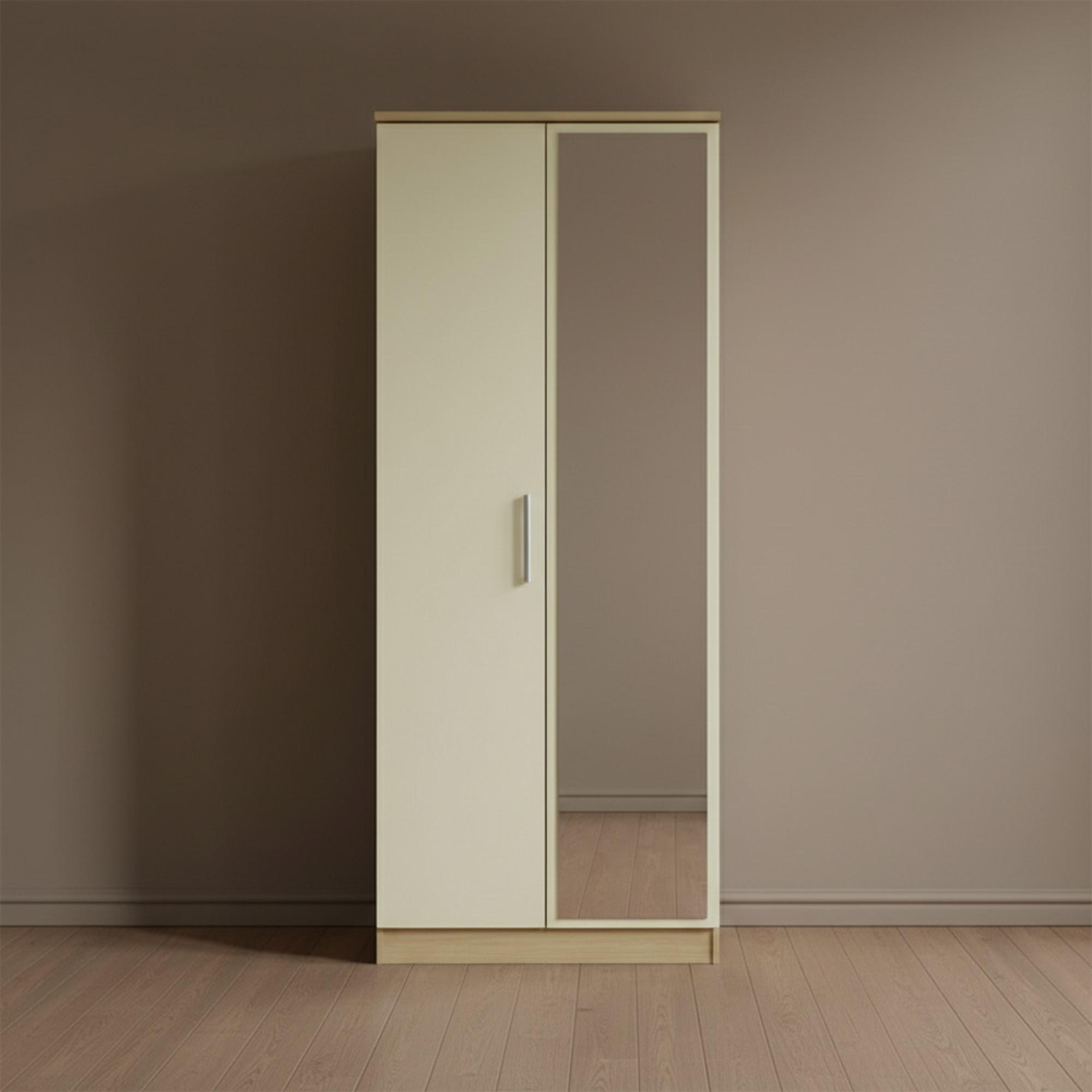 Knightsbridge Wardrobe - 2 Door - Tall - 1 Mirror - Cream Gloss and Light Oak