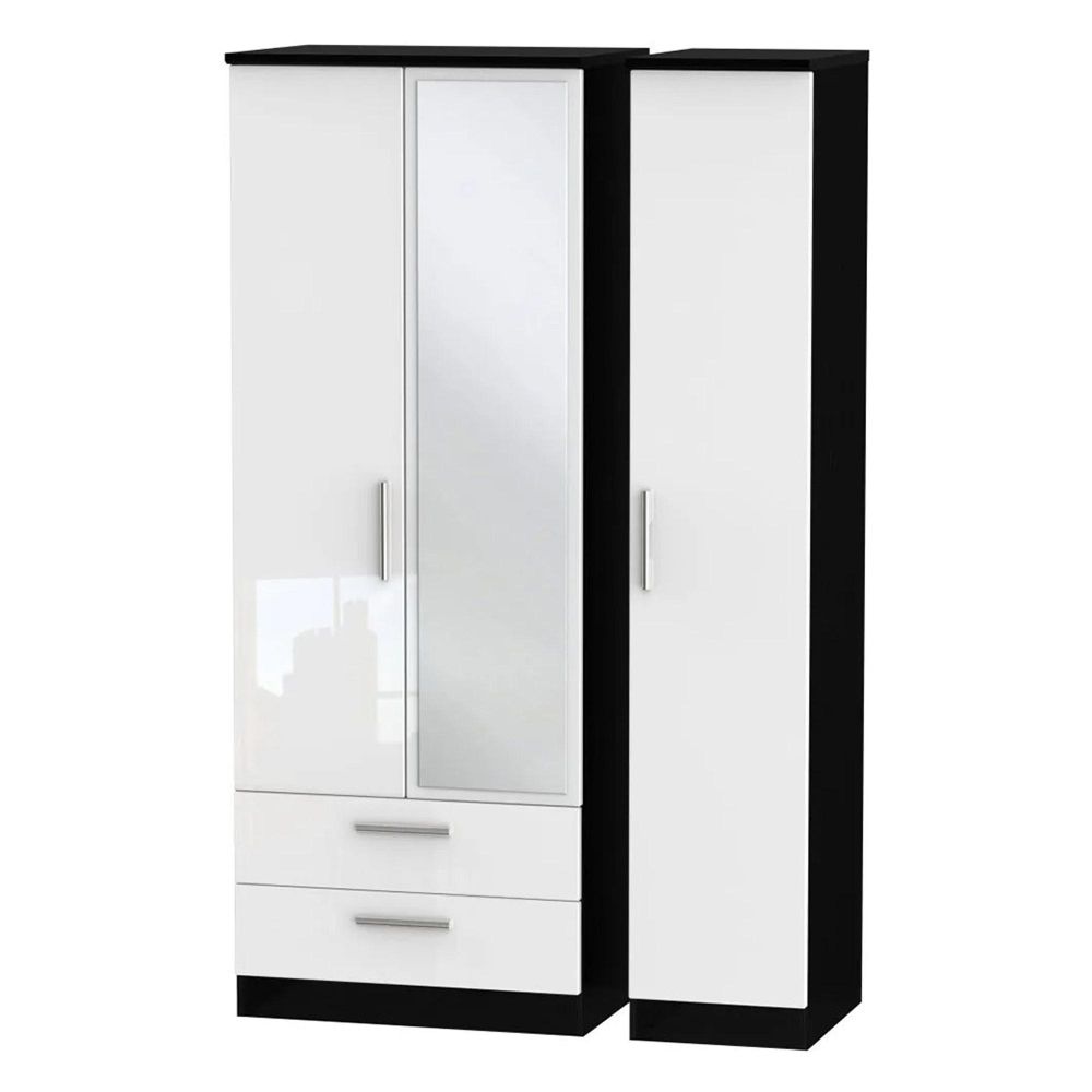 Knightsbridge Wardrobe - 3 Door - 1 Mirror - LHF 2 Drawer - Tall Combi - White Gloss and Black
