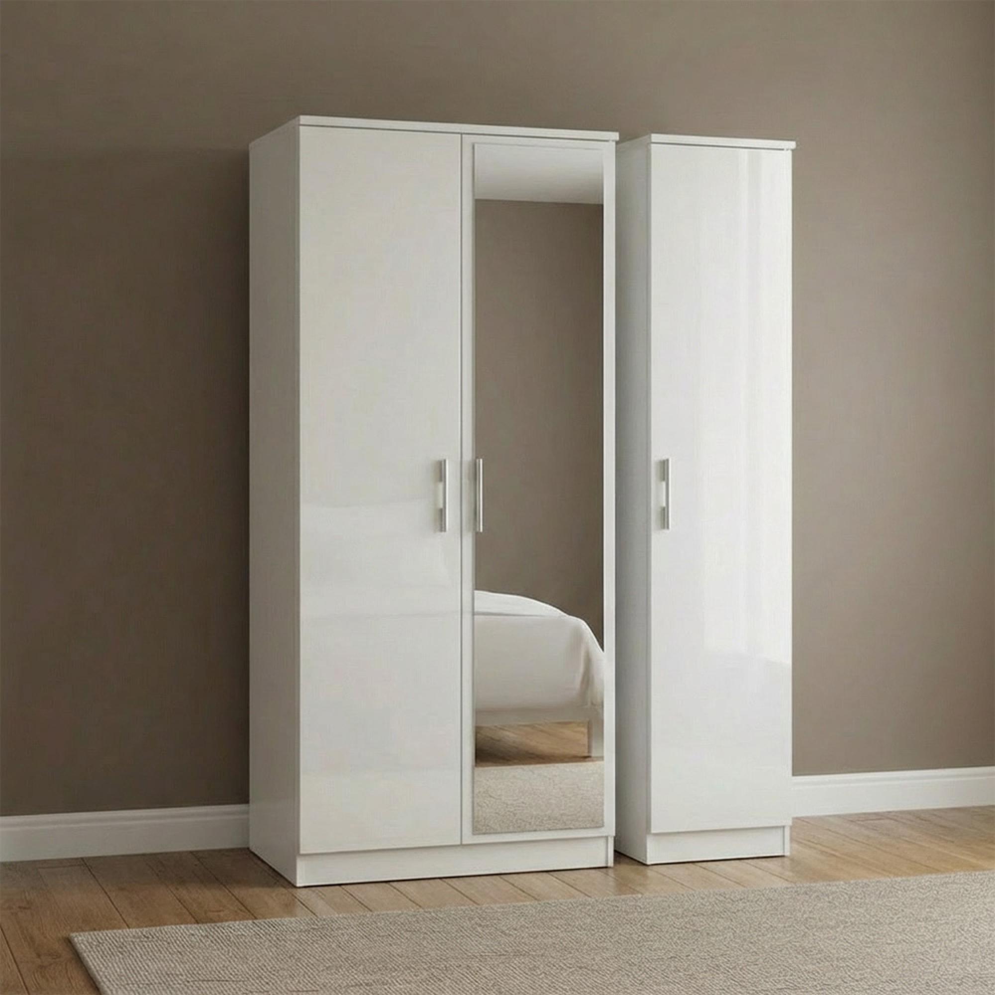 Knightsbridge Wardrobe - 3 Door - 1 Mirror - Triple - White Gloss