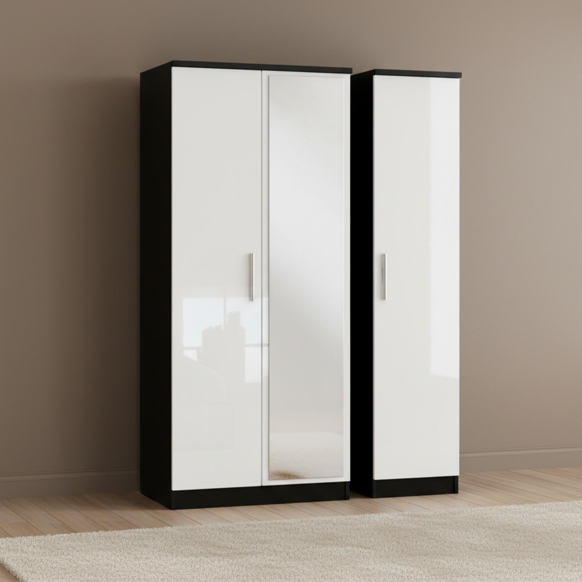 Knightsbridge Wardrobe - 3 Door - 1 Mirror - Triple - White Gloss and Black