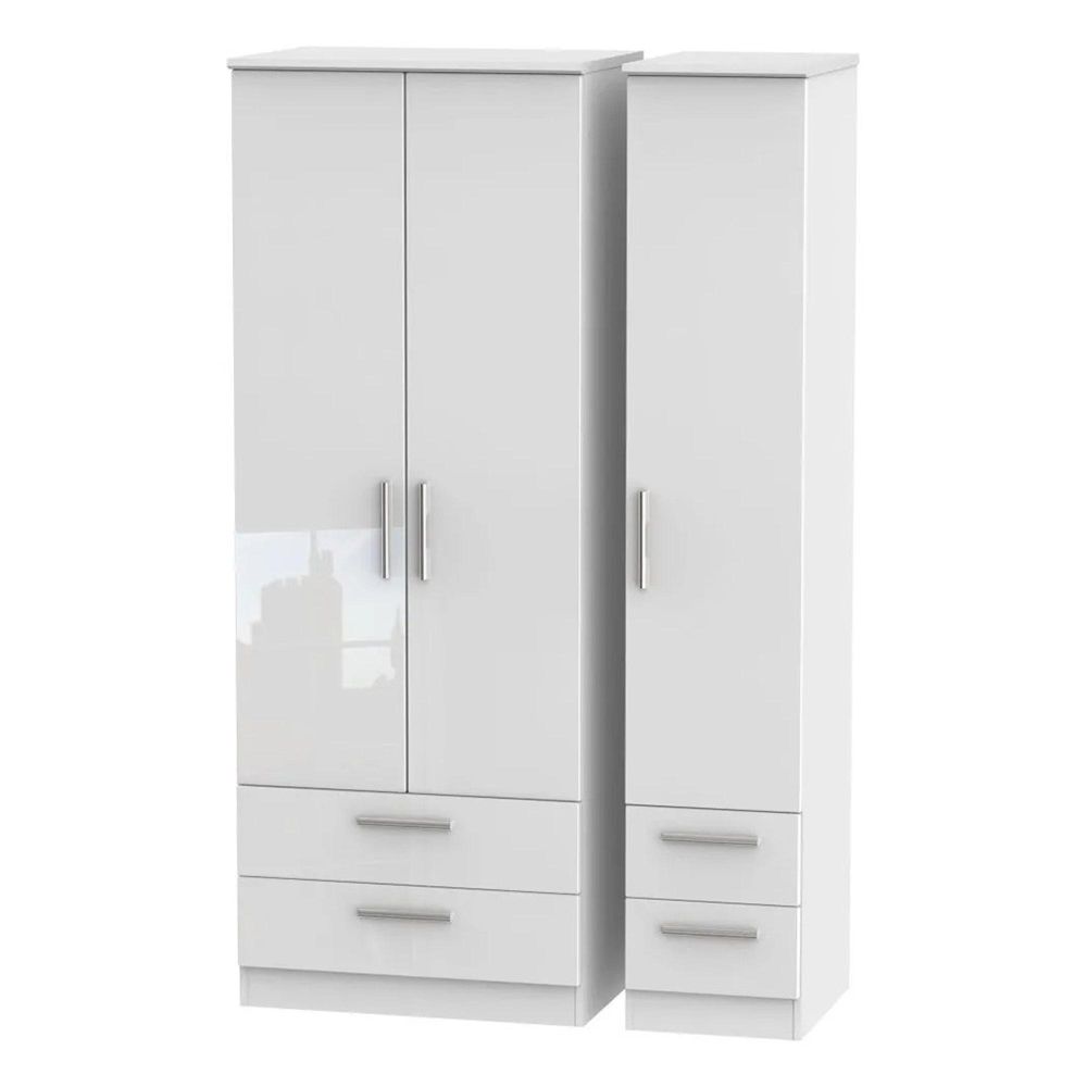 Knightsbridge Wardrobe - 3 Door - 4 Drawer - Tall - Triple - White Gloss