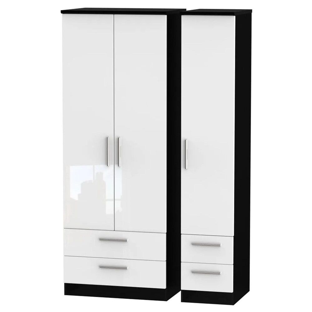 Knightsbridge Wardrobe - 3 Door - 4 Drawer - Tall Triple - White Gloss and Black