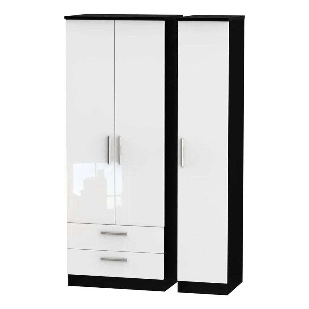 Knightsbridge Wardrobe - 3 Door - LHF 2 Drawer - Tall Triple - White Gloss and Black