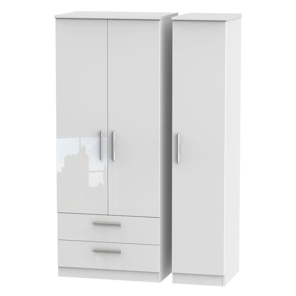 Knightsbridge Wardrobe - 3 Door - LHF 2 Drawer - Triple - White Gloss