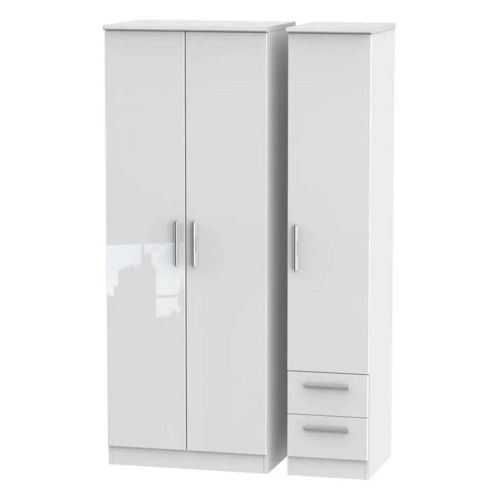 Knightsbridge Wardrobe - 3 Door - RHF 2 Drawer - Tall - Triple - White Gloss