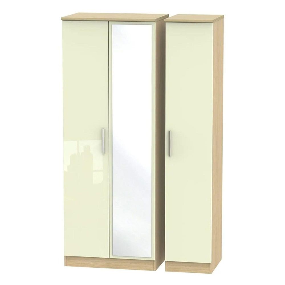 Knightsbridge Wardrobe - 3 Door - Tall Triple - Cream Gloss and Light Oak