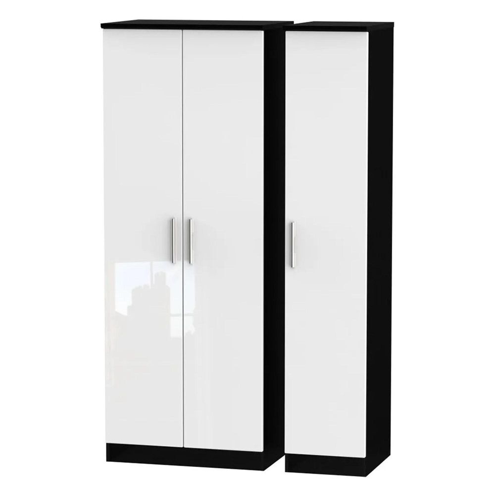 Knightsbridge Wardrobe - 3 Door - Tall Triple - White Gloss and Black