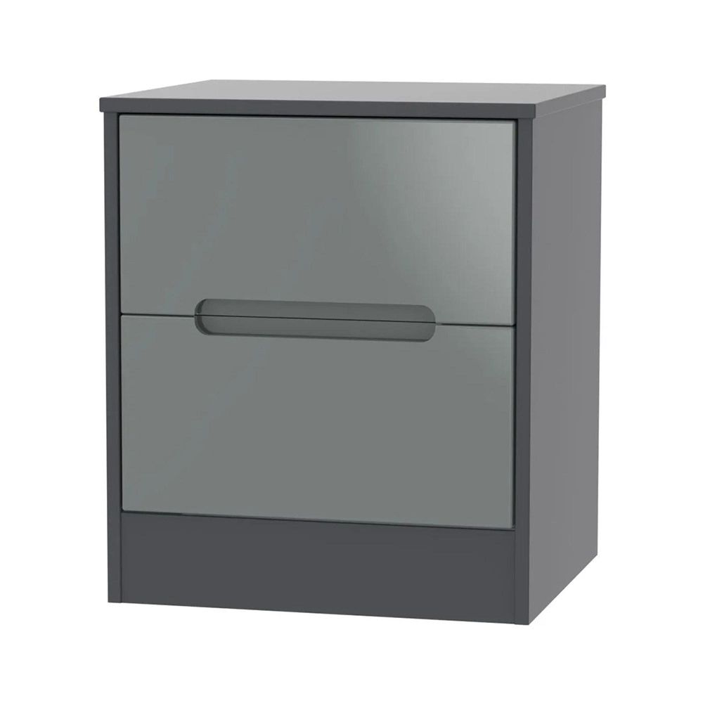 Monaco Bedside Cabinet - 2 Drawer - Grey Gloss and Graphite