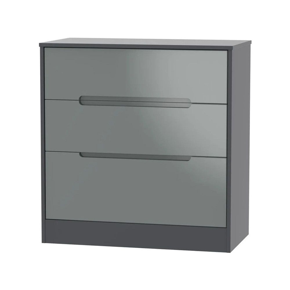Monaco Chest - Deep - 3 Drawer - Grey Gloss and Graphite