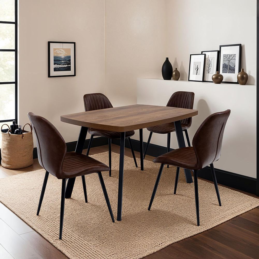 Item Code: FON01 Perfect for any dining space, Fontana more than delivers on style and comfort. Wonderfully well cushioned seats, beautifully scalloped at the sides and supported with a curved back. Tailored in a warm tan faux leather which exudes presence, a timeless colour. Finished with black powder coated legs.