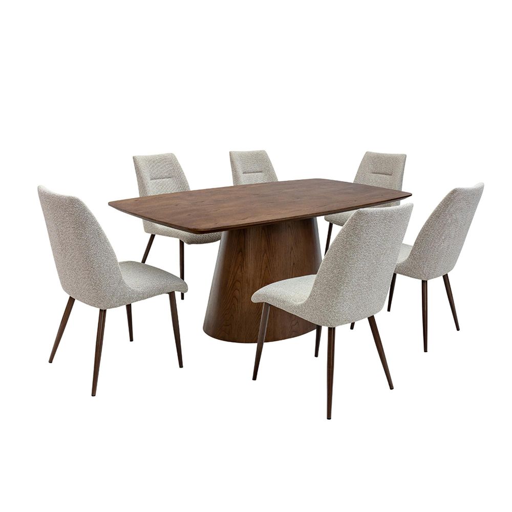 Item Code: EM01 The Emory dining table brings a touch of elegance and design to any dining room. With a beautifully crafted curved top combined with a sloping cylindrical base, the table is elegantly refined and enriched with a deep chestnut finish.