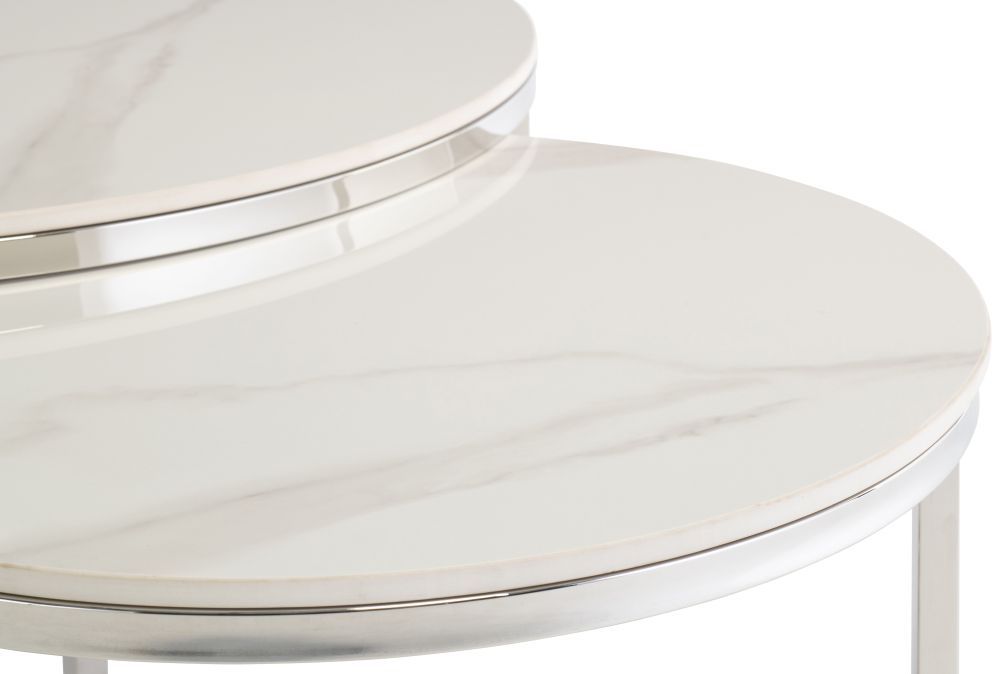 Hanson Italy White Sintered Stone and Chrome Round Coffee Table - Set of 2