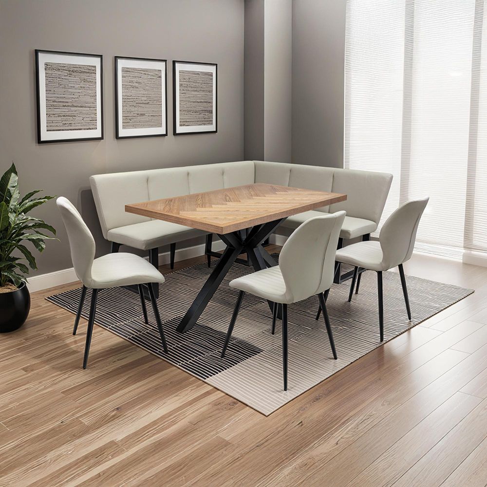 Zara Ash Herringbone 4 Seater Dining Table with Spider Legs - 140cm