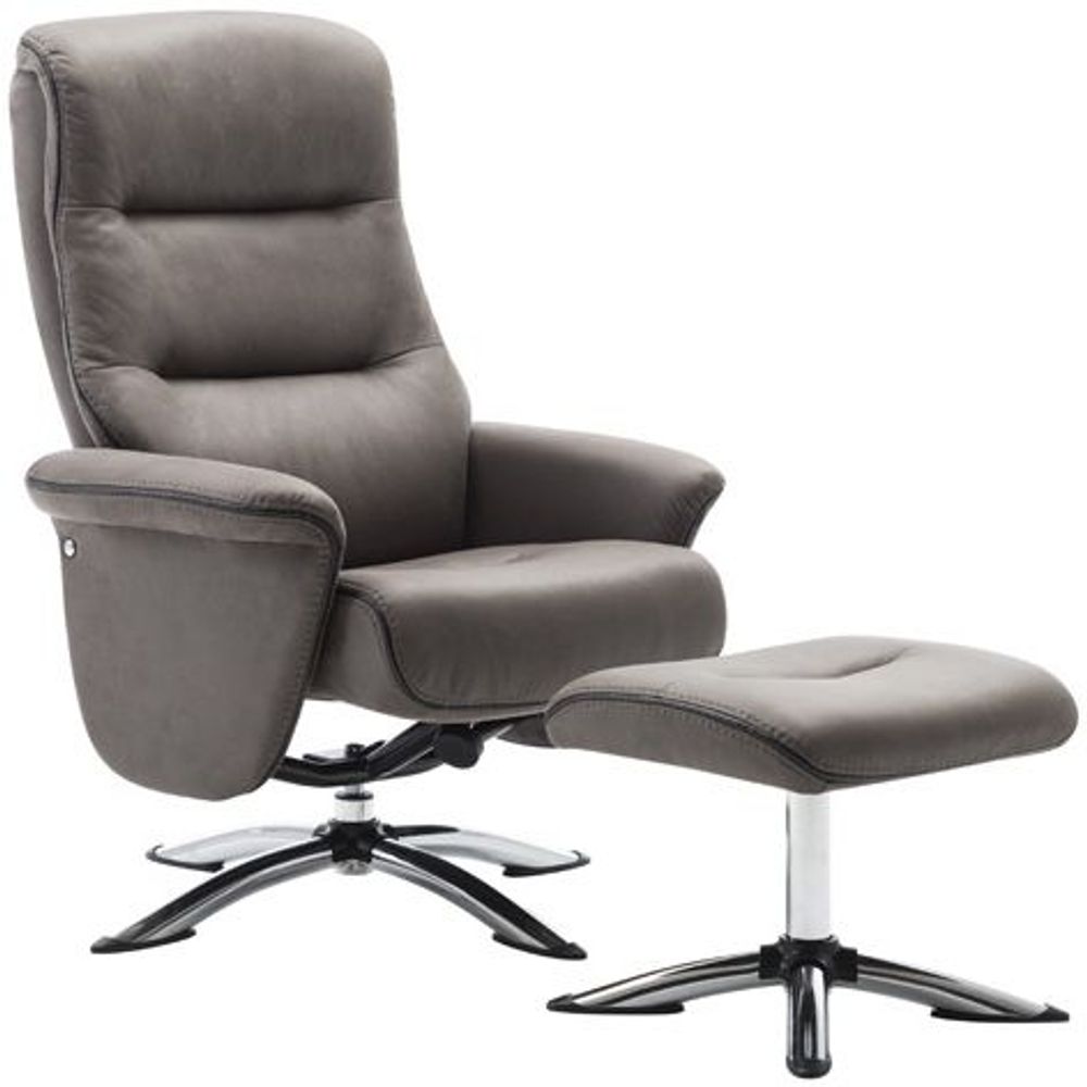 Item Code: TEX-306-GR The Texas Swivel chair and matching footstool has been designed with one aim to take relaxation to the next level. The chair swivels a full 360 degrees offering panoramic views from its prominent position. It is dressed in a fabric which has a look of nubuck leather so strong and hardwearing. A sleek sunray pedestal which opens out into four legs offers excellent support and stability. A fantastic chair to unwind, relax and chill out in.