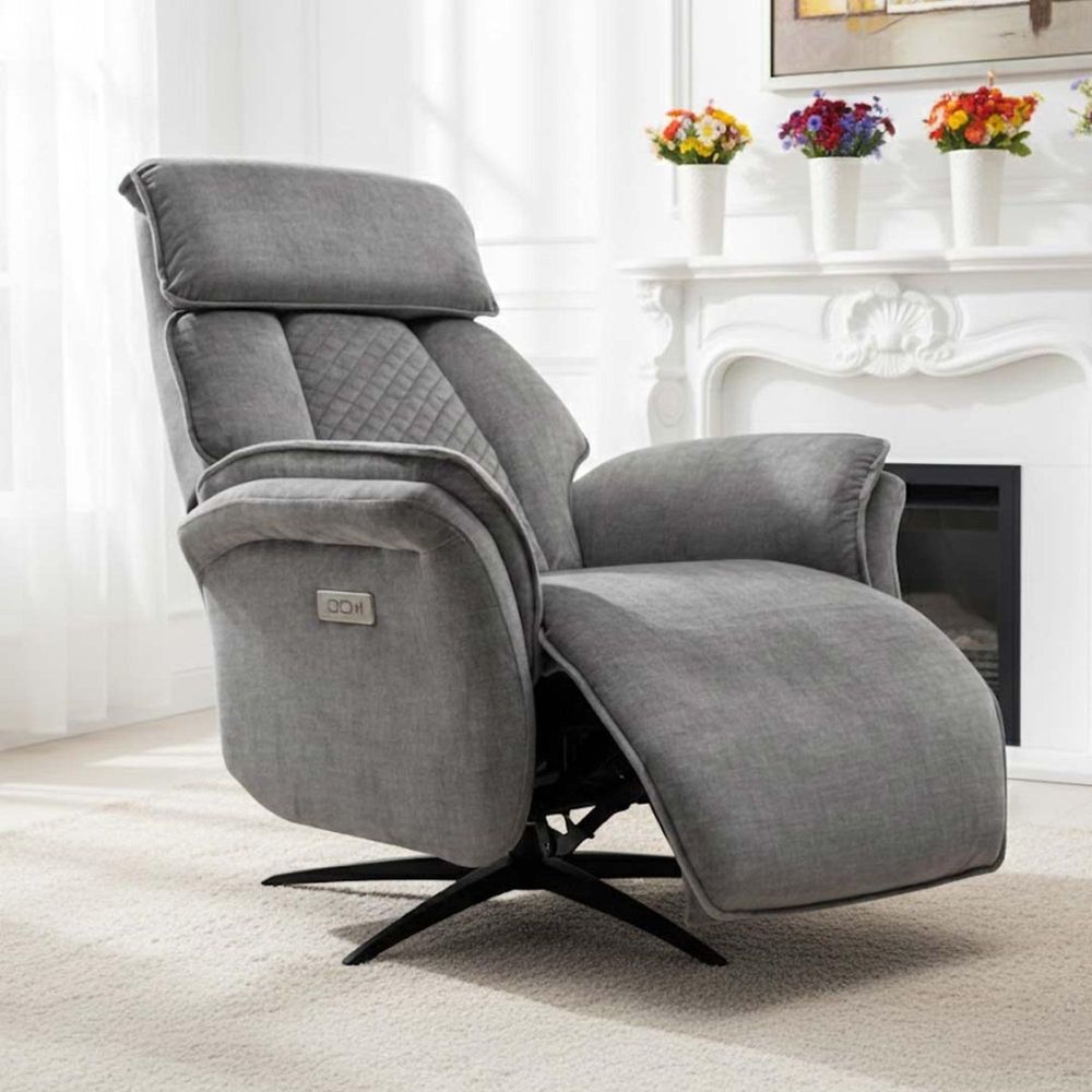Evoque Swivel Electric Recliner Armchair - Grey Fabric