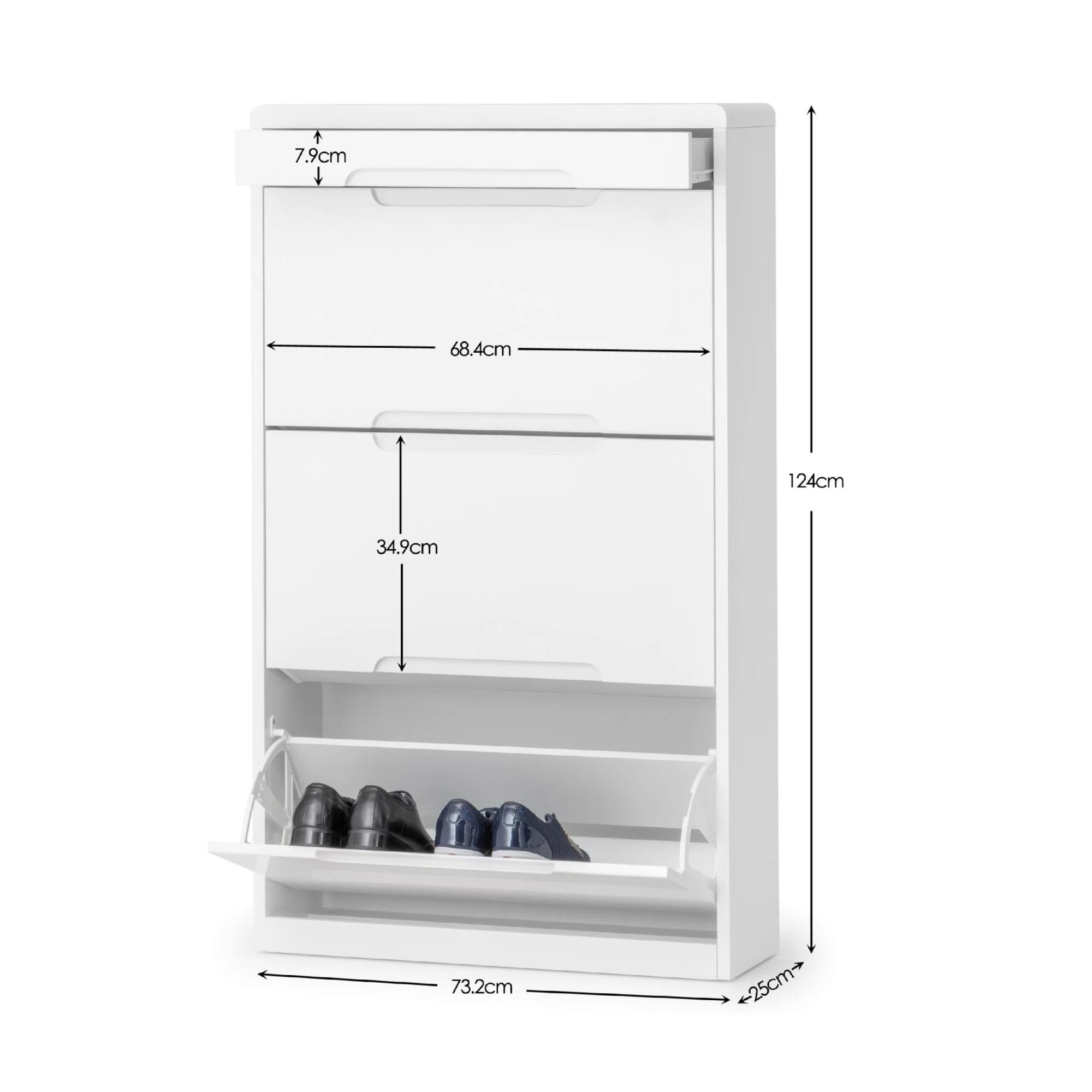 Manhattan White Gloss Shoe Flip Down 3 Door Cabinet