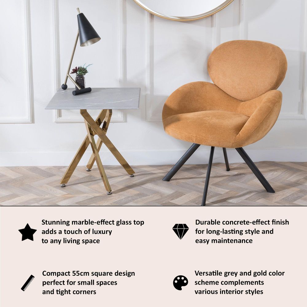 Clearance - Chopstick Grey Glass Square Side Table with Gold Metal Legs