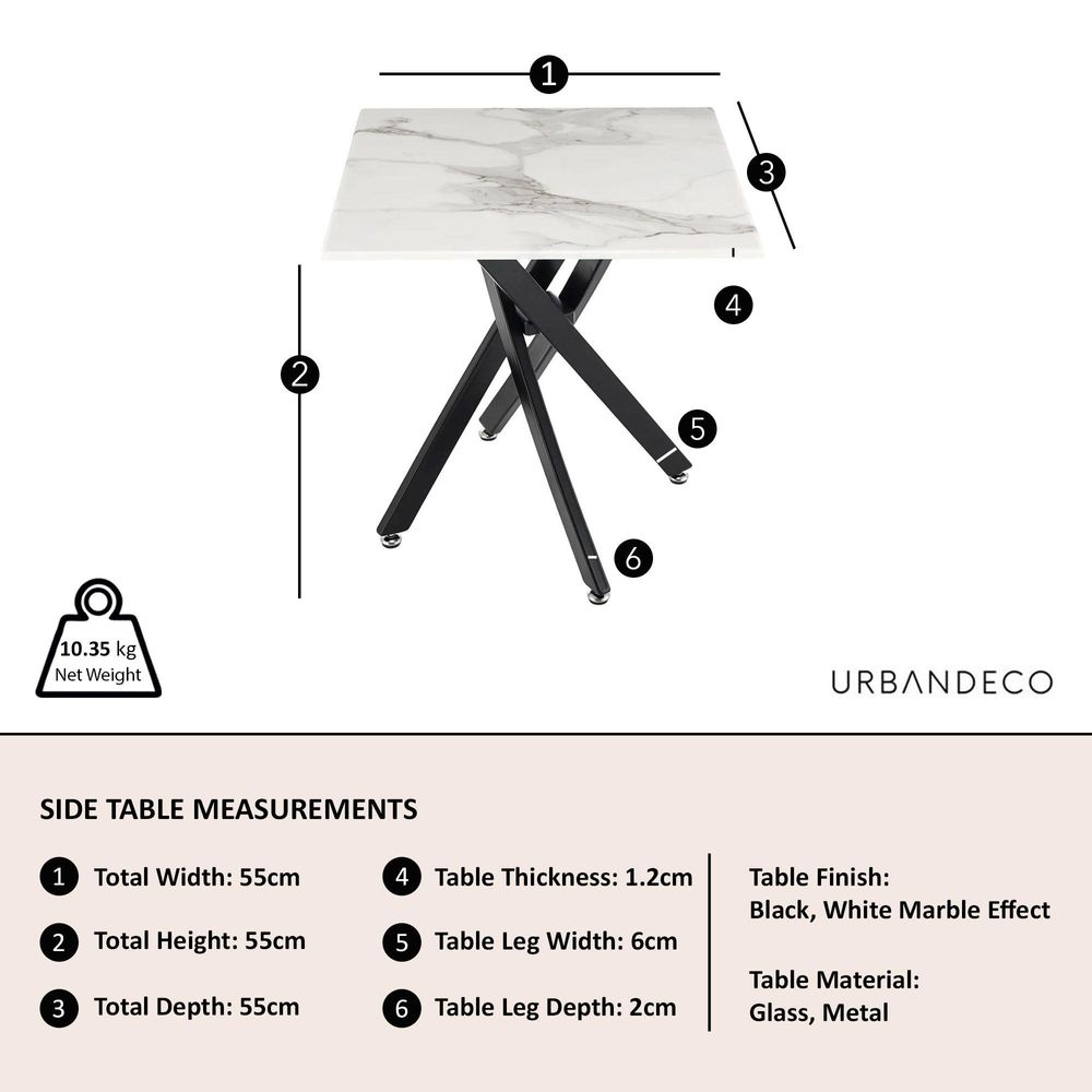 Clearance - Chopstick White Glass Square Side Table with Black Metal Legs