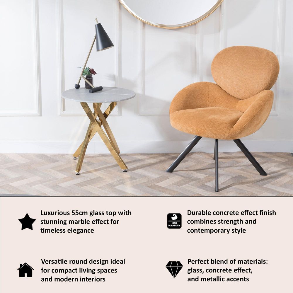 Clearance - Chopstick Grey Glass Round Side Table with Gold Metal Legs