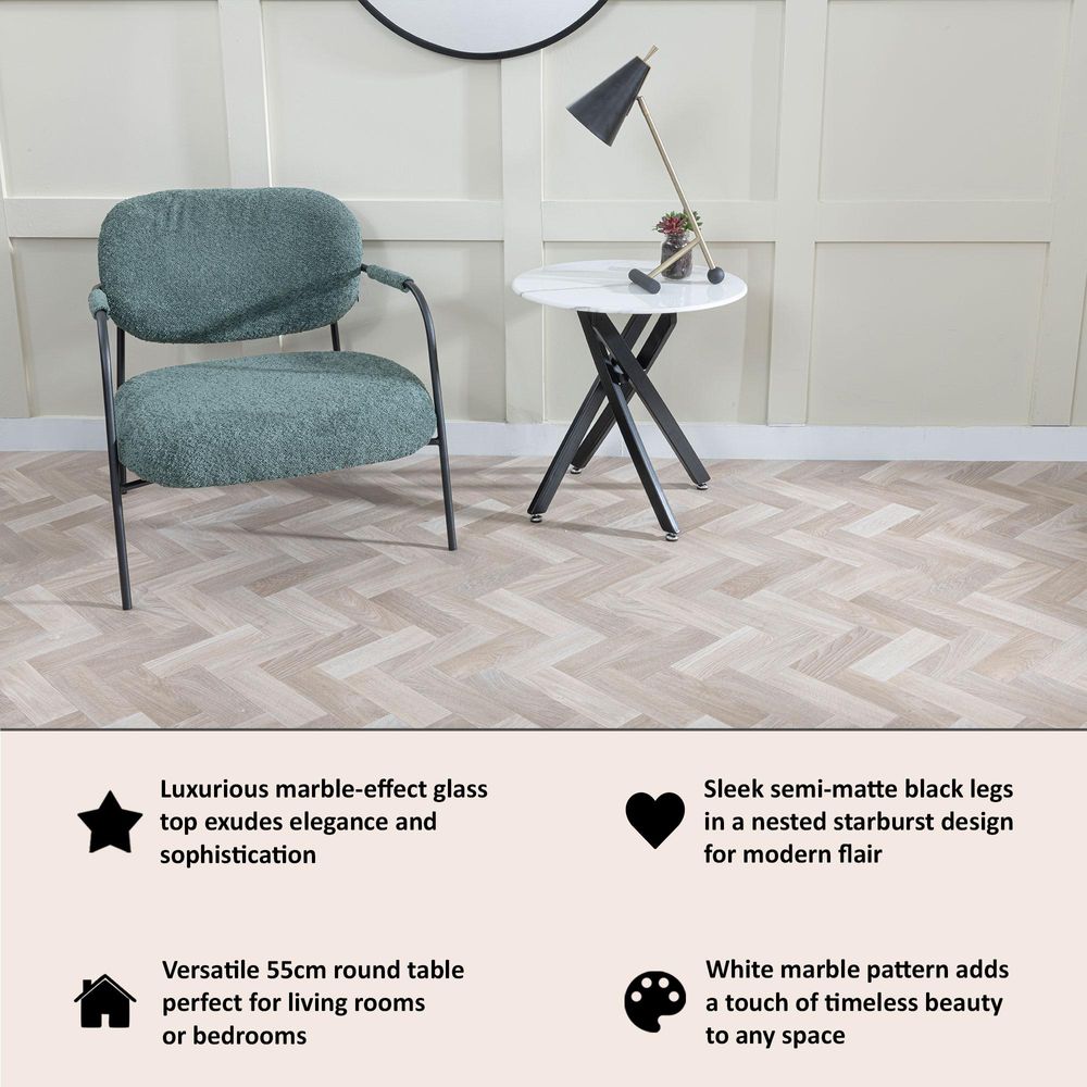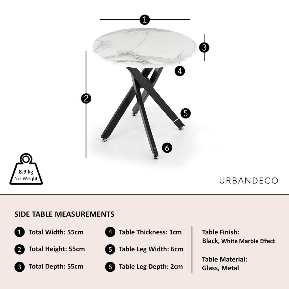 Clearance - Chopstick White Glass Round Side Table with Black Metal Legs