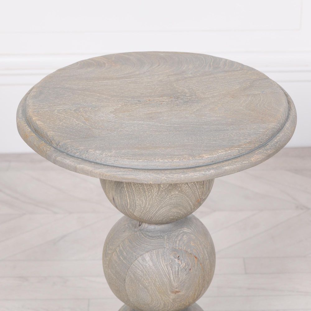 Item Code: KFA090 Rustic Wooden occasional side table with ball shaped column made from rustic mango wood