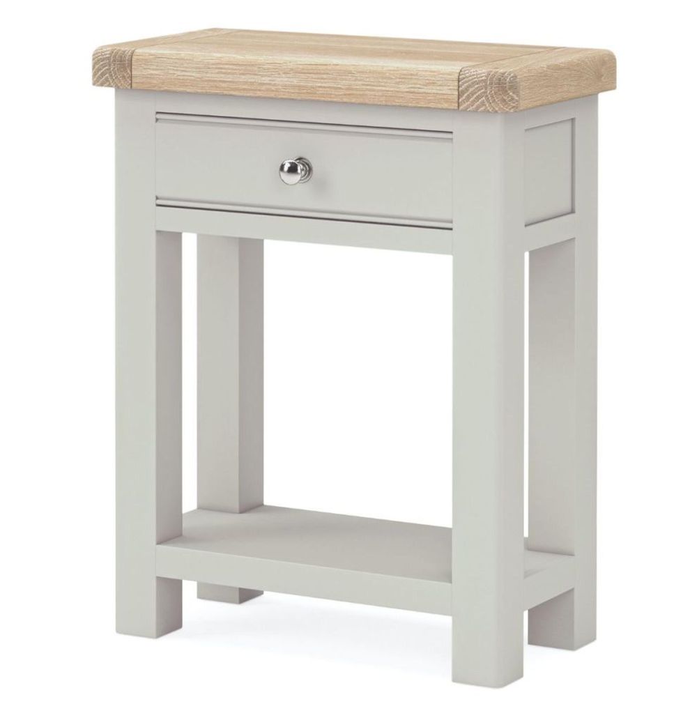 The Salcombe Telephone Table reflects expert craftsmanship and enduring quality. Its natural oak-finished top, combined with painted finishes in stone grey or sage green, creates a warm and inviting look while maintaining a refined, classic style. The table’s sturdy construction, with chunky tops and solid wooden legs, offers both stability and presence, making it suitable for various interior styles from traditional to contemporary country chic.
