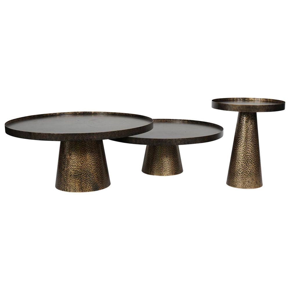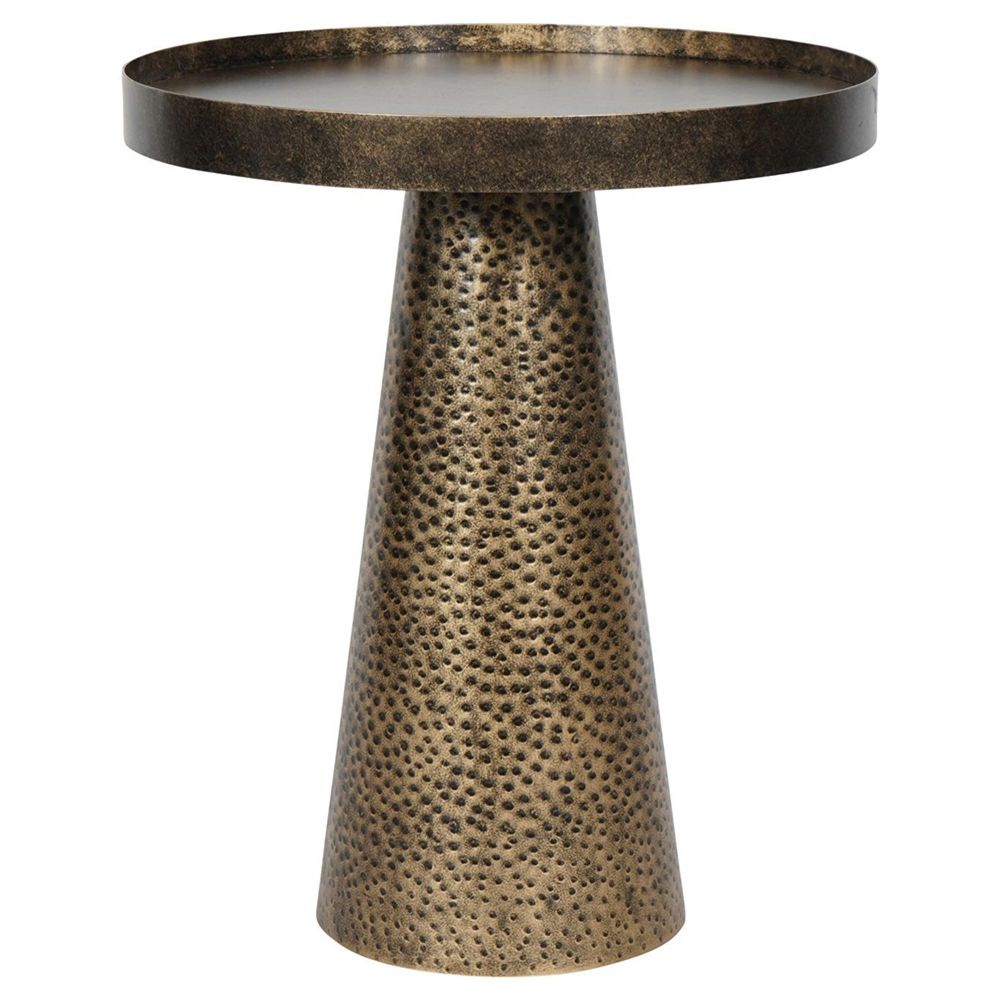 Item Code: 704789 The Sandbanks Side Table is made in made in a mix of Antique and Rustic bronze and gold finishes, using traditional hand finishing techniques. The table has a thick frame round the circular table top, and sits on a conical base with a beautiful hammered effect. Part of our wider Sandbanks collection of lighting and furniture.Free Delivery