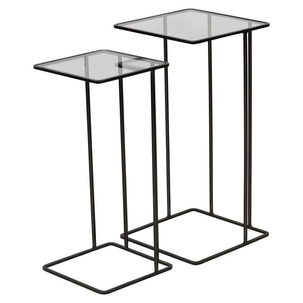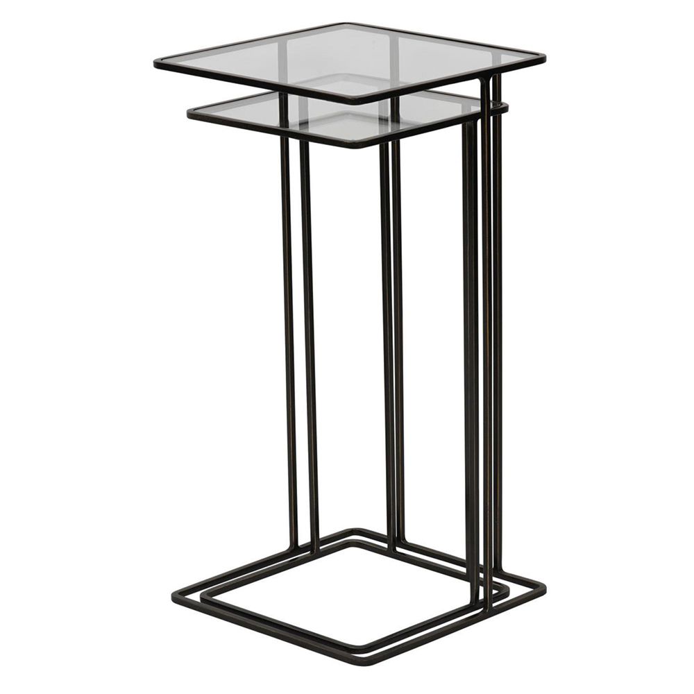 Item Code: 704980 Elegant, practical set of 2 nesting side tables with clear glass tops on dark bronze frames. Also available with clear glass and bronze metal finish. Table tops measure Large 30cm x 30cm. Small 25cm x 25cm.Free Delivery