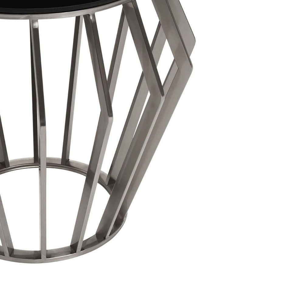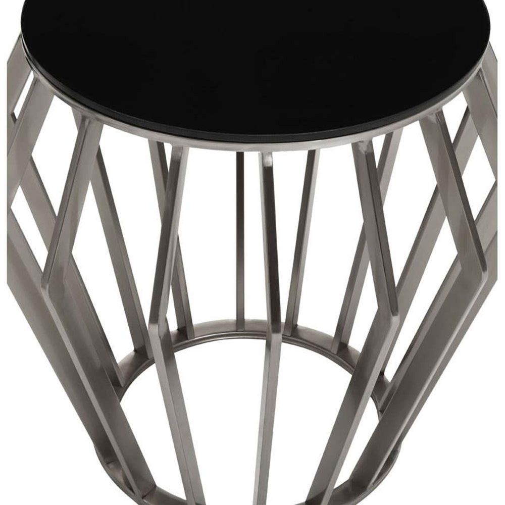 Ackley Side Table - Round - Black Glass - Silver Legs