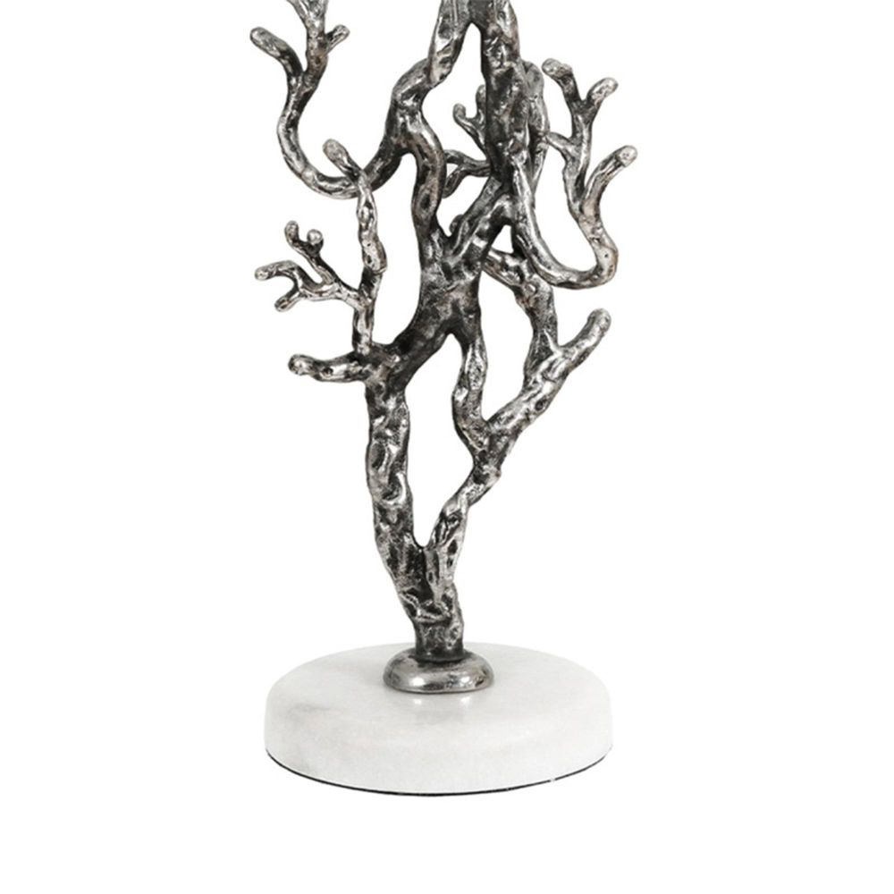 Item Code: MF457-00-GLS-ASV Add a touch of nature-inspired elegance to your space with this stunning Antique Silver Twig Design Accent Table. Standing at 60cm tall, this artistic piece features a unique organic twig-shaped metal base in a lustrous antique silver finish, reminiscent of sculpted branches. Topped with a sleek round glass surface, it perfectly balances modern sophistication with natural charm. The solid marble base provides stability while enhancing its luxurious appeal, making it an ideal statement piece for any living room, hallway, or bedroom.Free Delivery