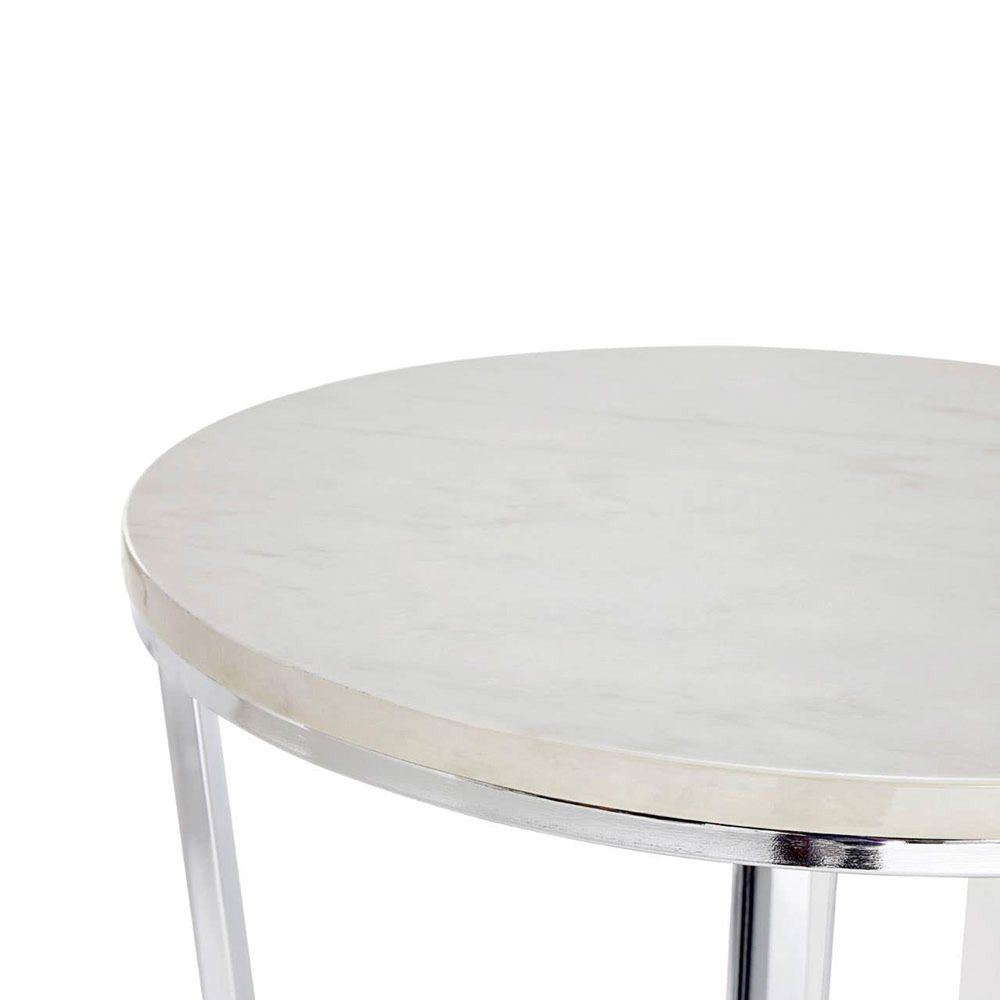 Allure End Table - Round - White Marble Effect - Chrome Base