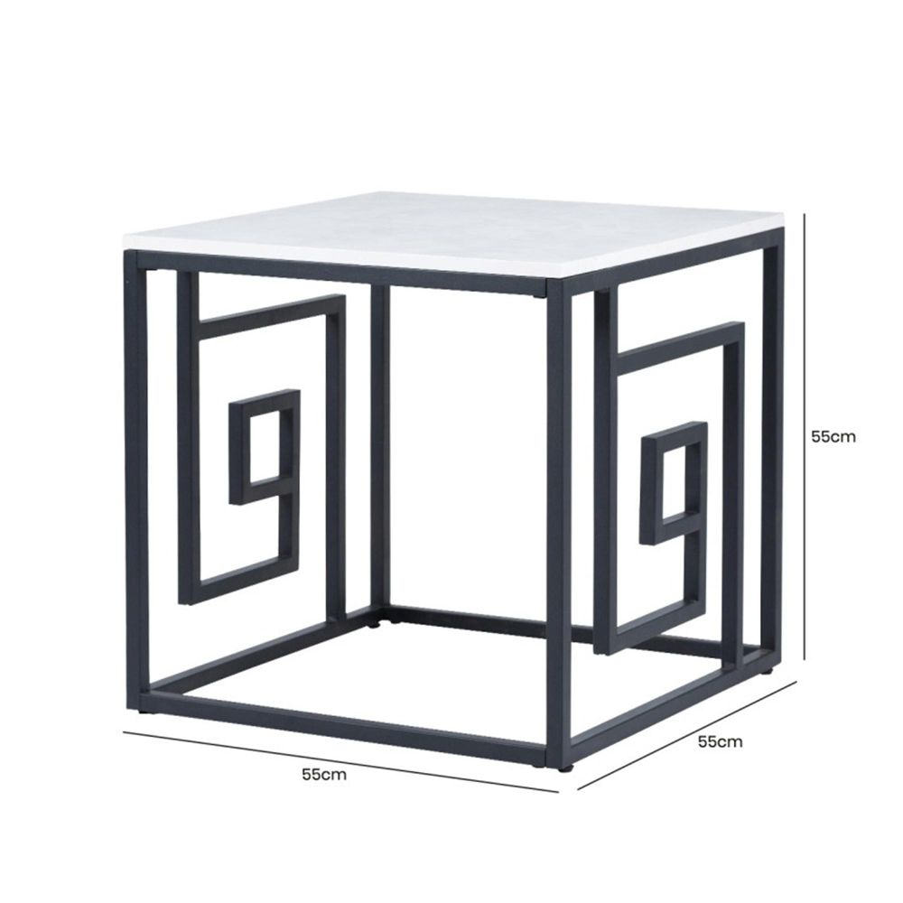 Item Code: MF326-00-BLGY Add a crisp, modern feel to any living area with the Devon end table. It features a black metal frame with Grecian inspired design on the side panels, with grey wooden, faux concrete finish top. This versatile piece is also ideal as a lamp/occasional/bedside/display table.Free Delivery