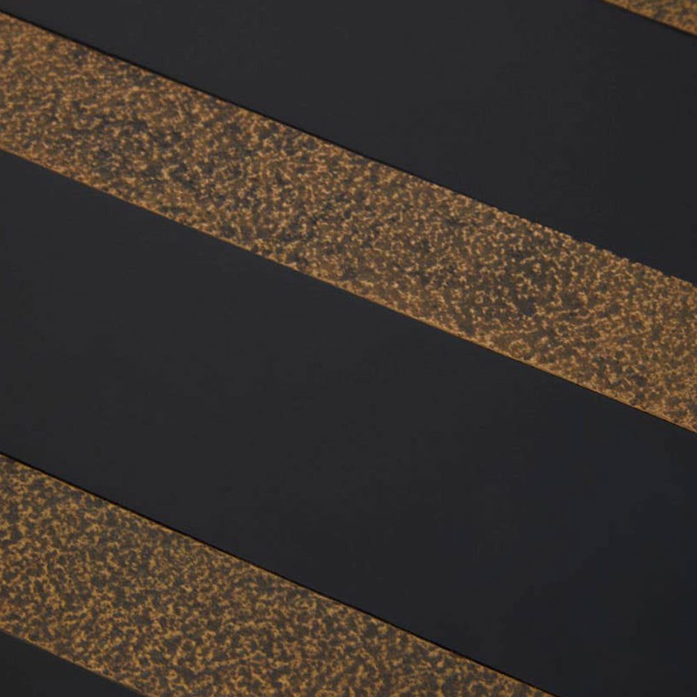 Item Code: 5529571 The Aris side table is made from acacia wood, finished in black and gold shade resting above a sturdy metal frame. This side table is constructed from acacia wood with black and gold finished stripes adorning the top. The tabletop is supported by a sleek frame bringing an element of minimalism to the design.
