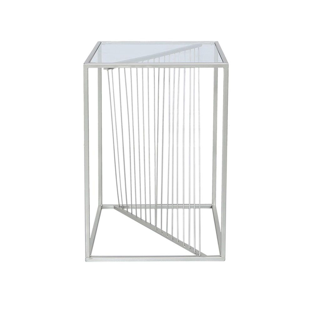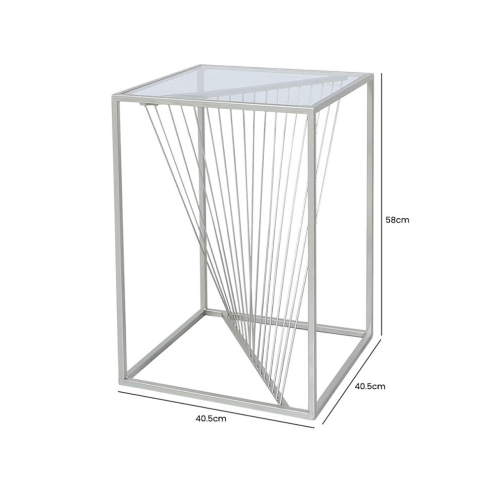 Luna End Table - Square - Clear Glass and Silver Metal