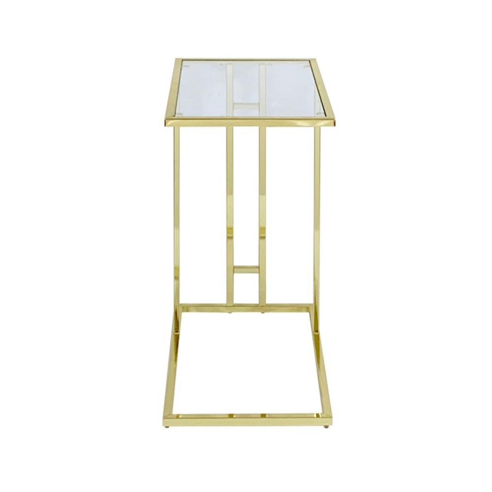 Item Code: MF181N-00-GLS-GD The Harry Gold Sofa Table has been designed to reflect simple, modern, and clean living. It features a gold-finished base with a rectangular design and a clear toughened glass table top.Free Delivery