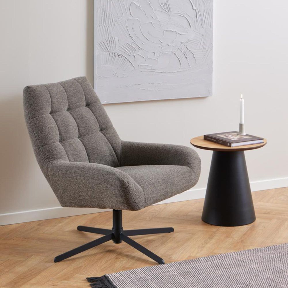Soli Side Table - Round - Oak and Black Metal
