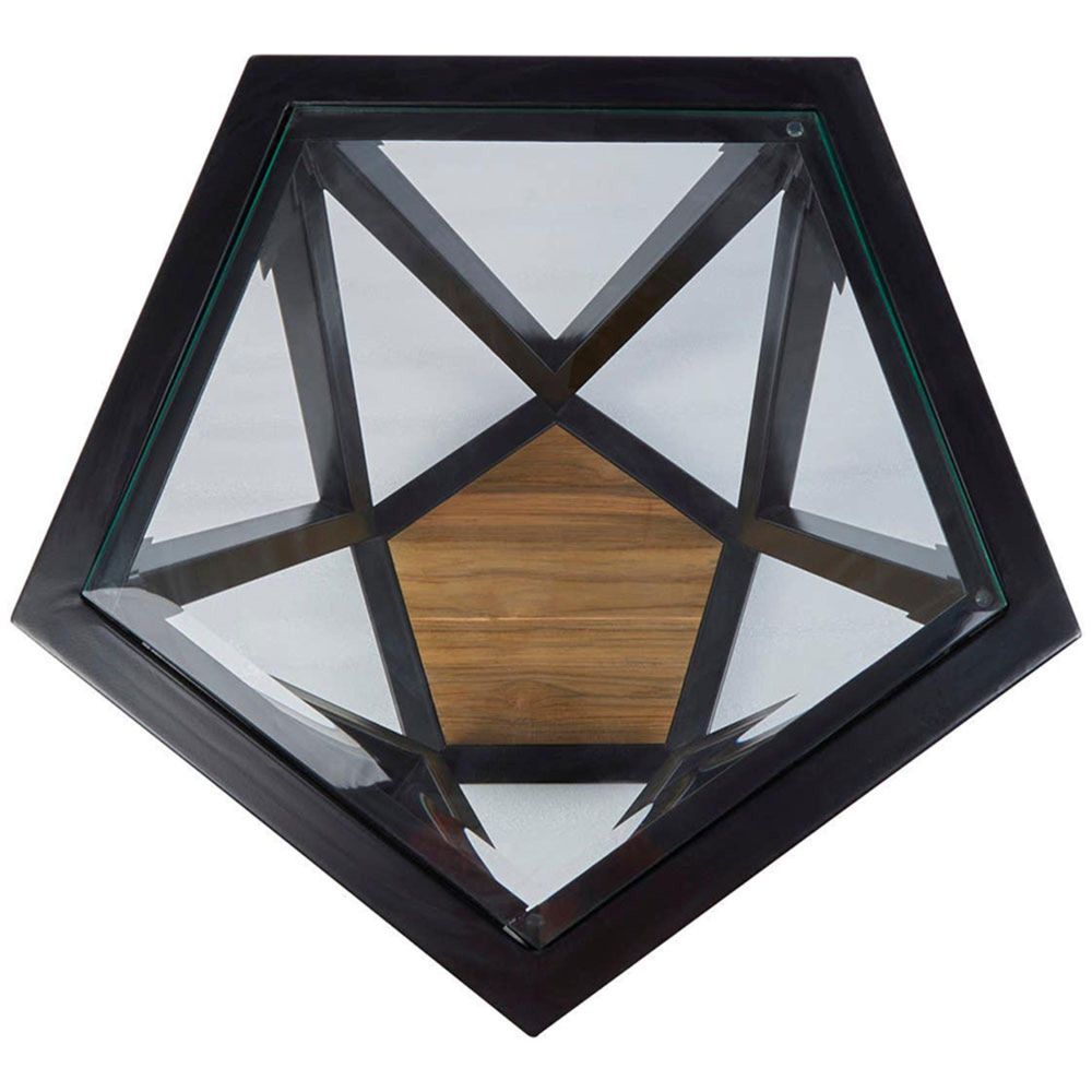 Cibo Side Table - Pentagonal - Clear Glass with Black Metal