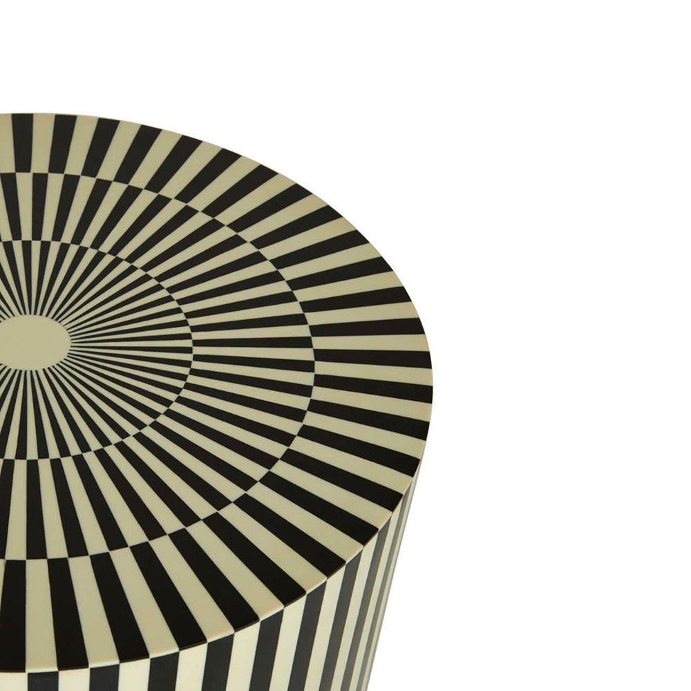 Item Code: 5502460 The Hassa cylindrical table and stool combine ivory and black hues in a dramatic pattern, bringing a contemporary look.This wooden stool has a captivating black and ivory striped pattern, making it a statement piece. The cylindrical shape adds to the visual intrigue, while the premium-quality resin offers long-lasting use. This versatile piece can be used as a stool or a table, offering a handy serving and display surface.