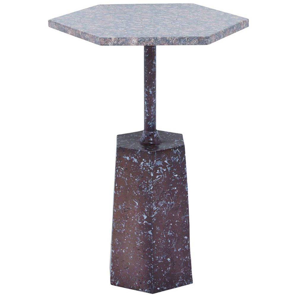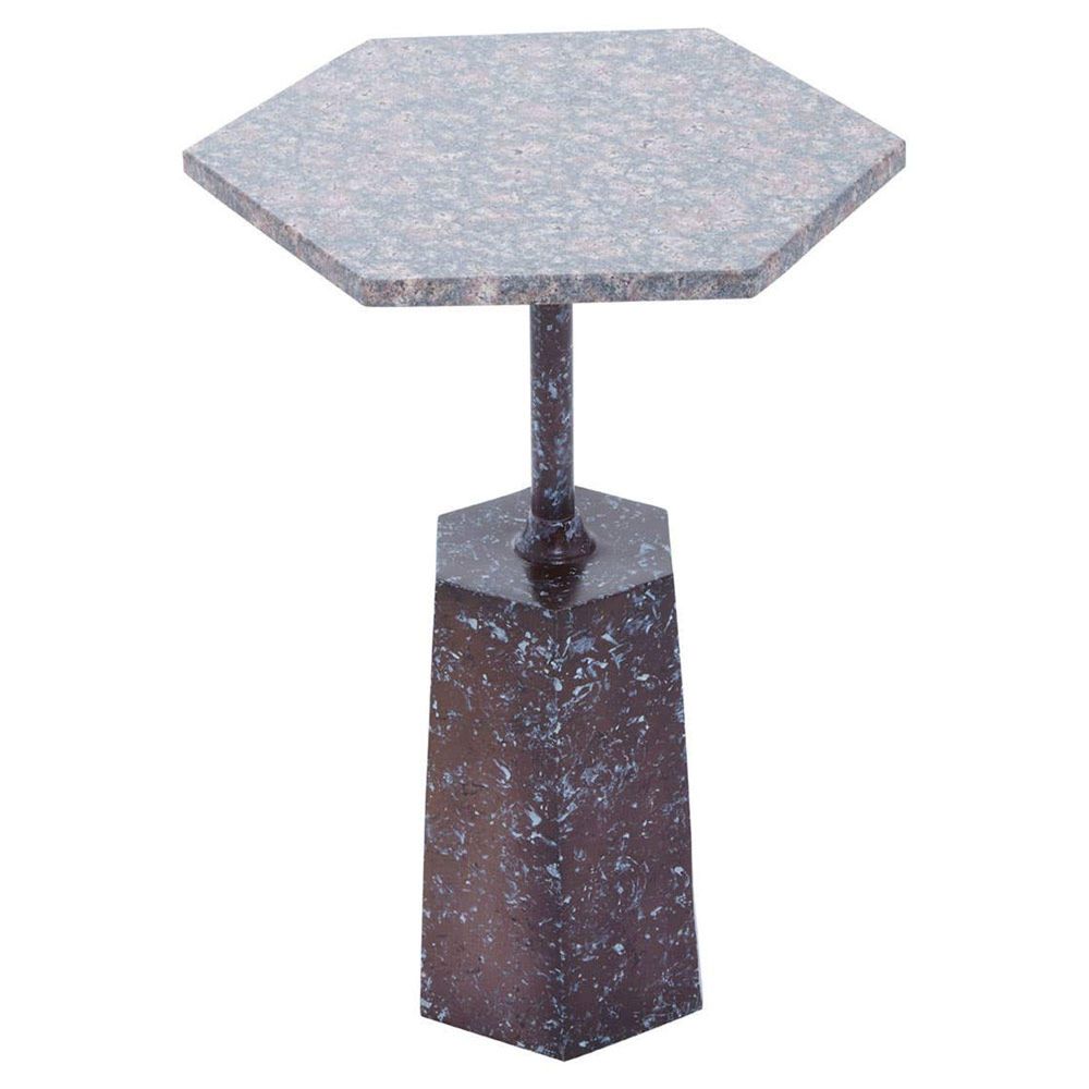 Item Code: 5528258 This side table exhibits a timeless and elegant accent that blends well with the modern and vintage interior.The Inventive side table features a hexagonal top that sits atop and coordinates well with the matching base. Skilfully handcrafted, this geometric side table is a mix of grey and brown marble that enhances the elemental appeal in the room.