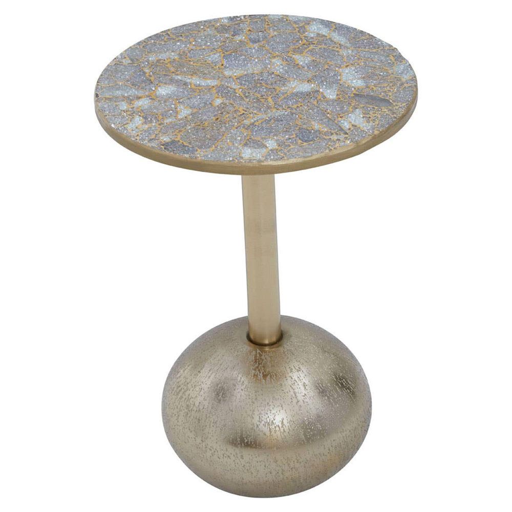 Item Code: 5528259 The Inventivo side table has a mosaic top that articulates a mid-century modern appeal in the living area.This side table is carefully connected to a round base in the warm metallic finish with the help of a slim cylindrical column.This item is handcrafted so please expect slight variations to the finish.
