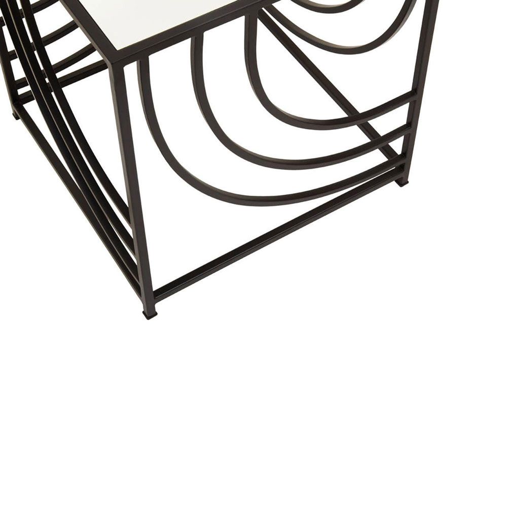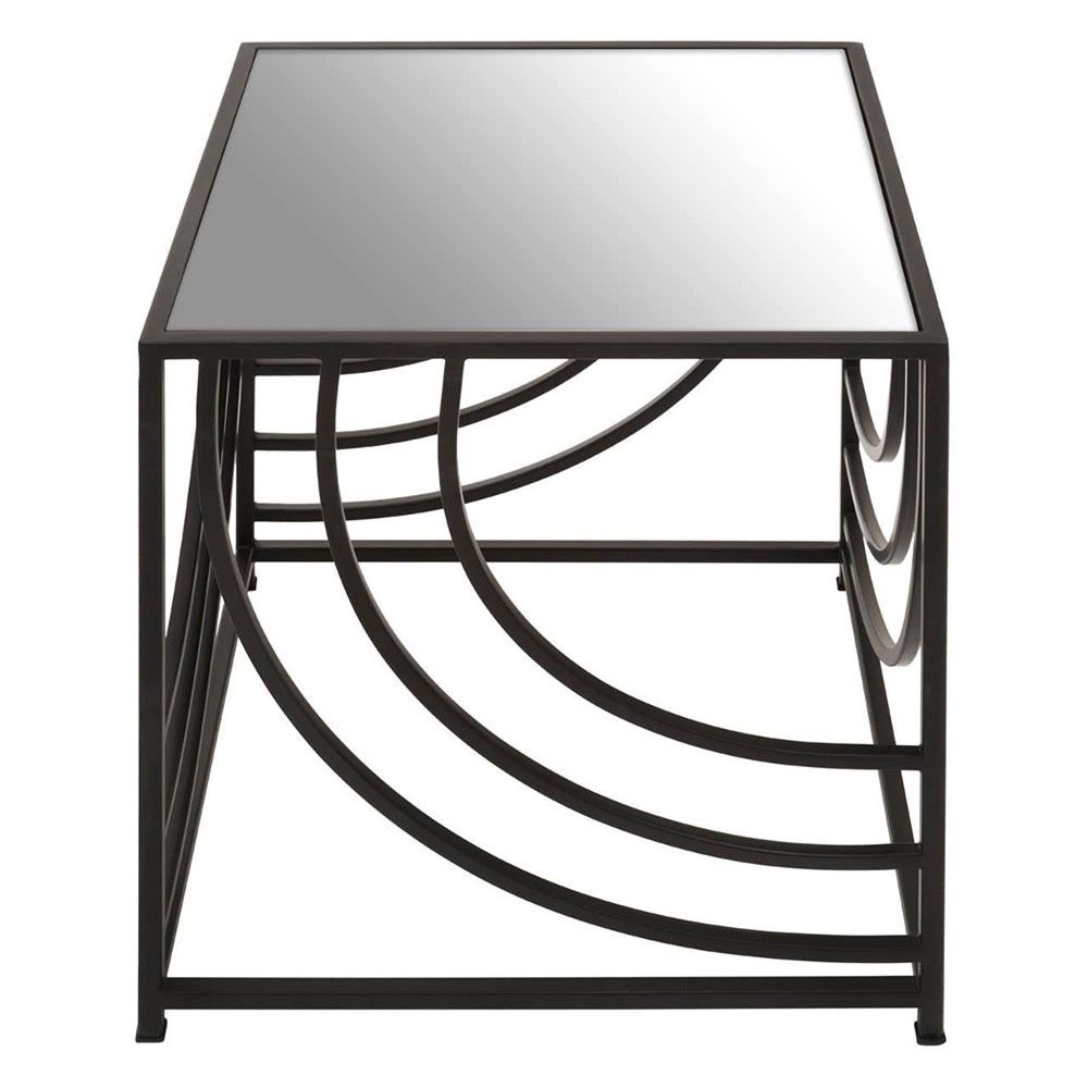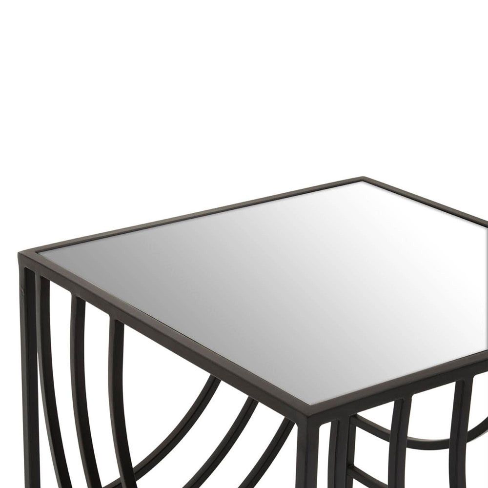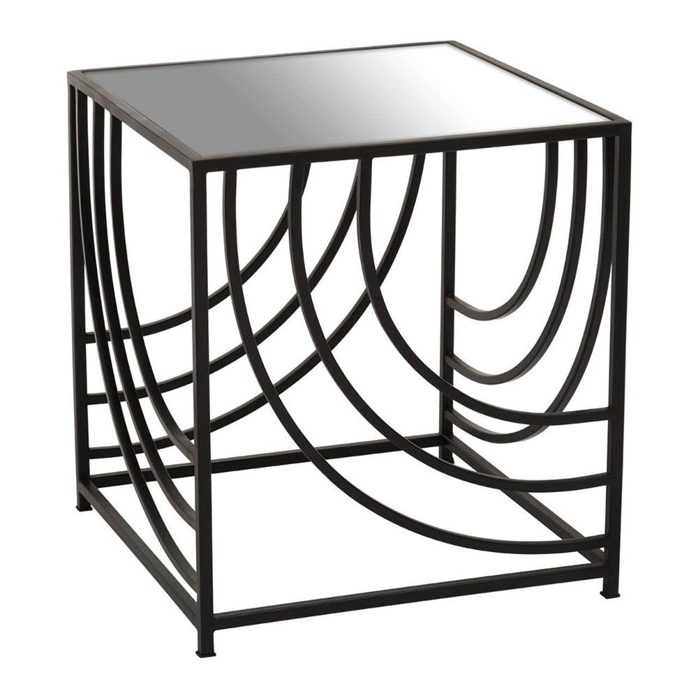 Item Code: 5528766 The Logan side table has monochromatic hues and a minimal profile will suit modern industrial homes.This side table introduces industrial with a series of three lines on each side creating a curved aesthetic. The clean and open frame supports a wide mirrored glass top that lends the design a touch of reflection and elegance.