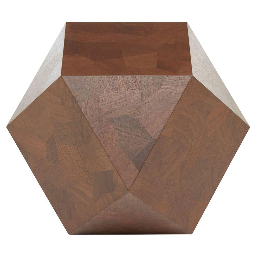 Item Code: 5502906 The Lino side table fuses popular mid-century design sensibilities with contemporary style and exquisite natural wood.Created from rich walnut wood, the hexagonal side table has been faceted to create a striking geometric design. The striking dark wood boasts prominent grain patterns that add distinction and intrigue.
