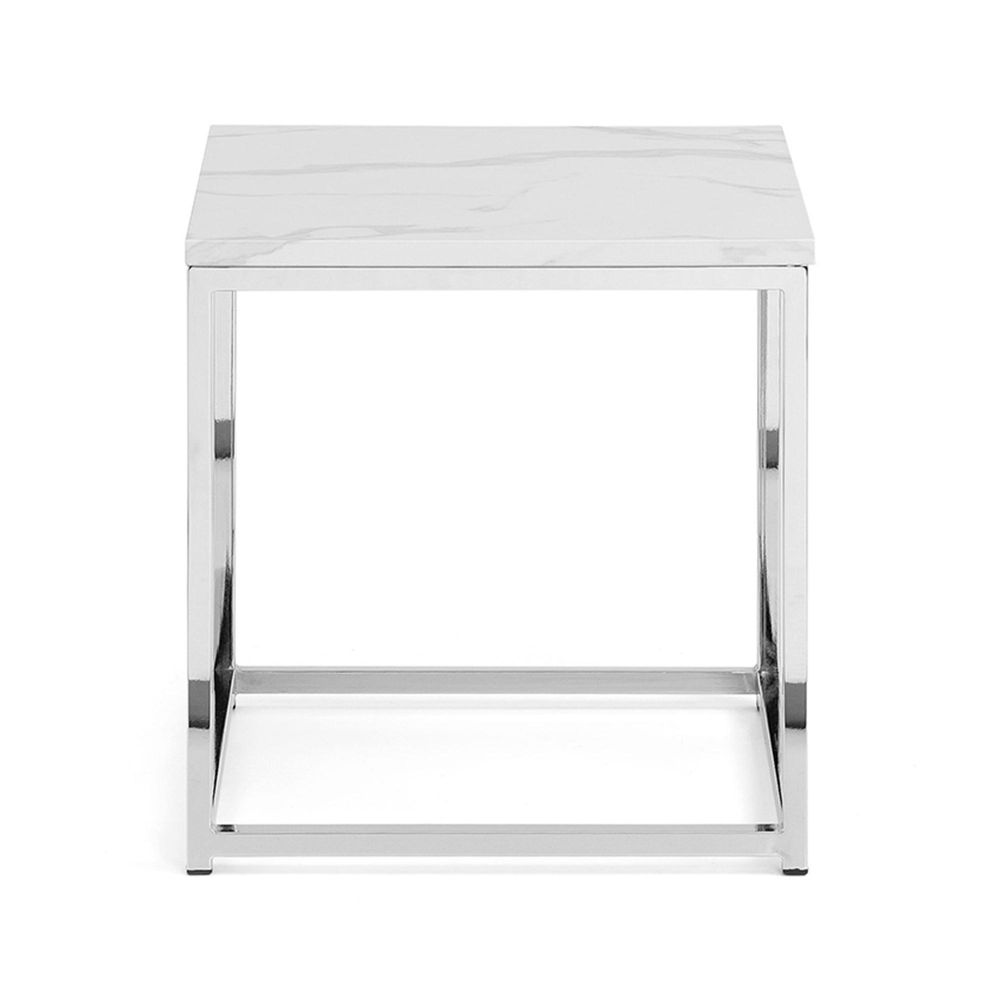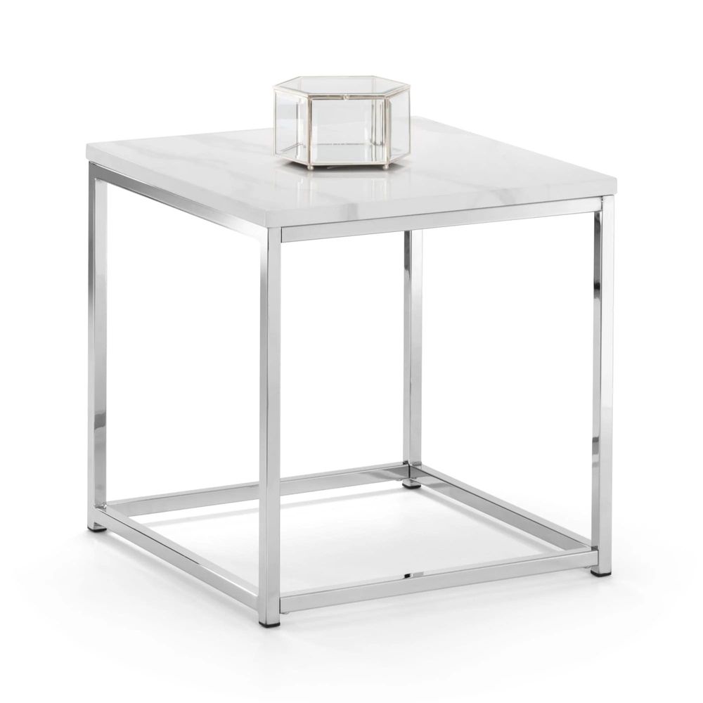 Scala Lamp Table - Square - White Marble Effect and Chrome